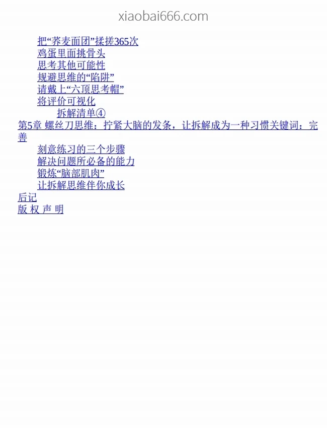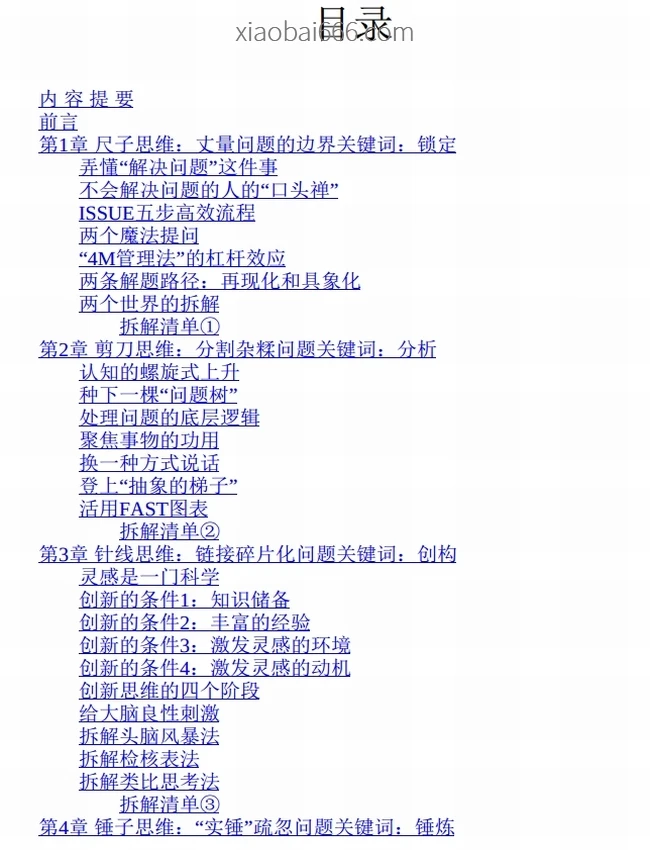 admin 宝藏资料 2026-01-30 解决问题工具书单(10部) 解决问题工具书单(10部) ├how to:如何不切实际地解决实际问题.pdf ├《学会提问(原书第12版)》.pdf ├《拆解一切问题》.pdf ├《有解:高效解决问题的关键7步》.pdf ├事实.pdf ├像高手一样解决问题_伯纳德·加雷特.pdf ├思考如何超越思考.pdf ├控制论与科学方法论.pdf ├金字塔原理大全集.pdf ├麦肯锡思考工具.pdf 登录后免费查看当前隐藏内容需登录后查看免费已有13人阅读 登录后查看 注册登陆即可免费下载全站资源! 点击这里开始注册 小白宝藏网 » 解决问题工具书单(10部)