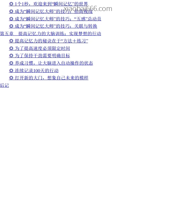 admin 宝藏资料 2026-03-06 《瞬间记忆术》 《瞬间记忆术》 95p.pdf 登录后免费查看当前隐藏内容需登录后查看免费已有8人阅读 登录后查看 注册登陆即可免费下载全站资源! 点击这里开始注册 小白宝藏网 » 《瞬间记忆术》