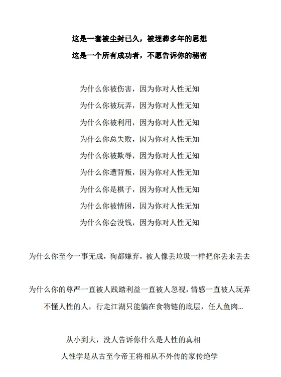 admin 认知学习 2025-11-24 绝密人性天书(高清本) 绝密人性天书(高清本) 登录后免费查看当前隐藏内容需登录后查看免费已有38人阅读 登录后查看 注册登陆即可免费下载全站资源! 点击这里开始注册 小白宝藏网 » 绝密人性天书(高清本)
